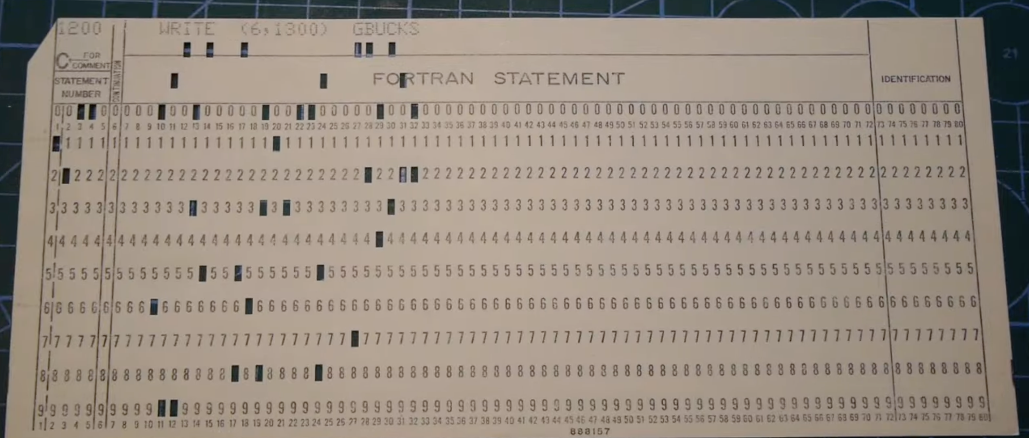 那時候最主流的格式是 IBM 80-Column Format,由 IBM 的工程師 Clair D. Lake 在 1928 年設計。他用長方形的孔洞取代了更早期 Hollerith 卡的圓形孔洞,讓同樣大小的卡片能塞進將近兩倍的資料。一張標準的打孔卡有: